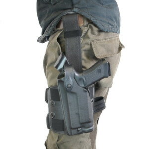 サファリランドのウェポンライトを装着した銃専用のロック付レッグホルスター、太ももに合わせた形状のパドルが足に無理なくフィット